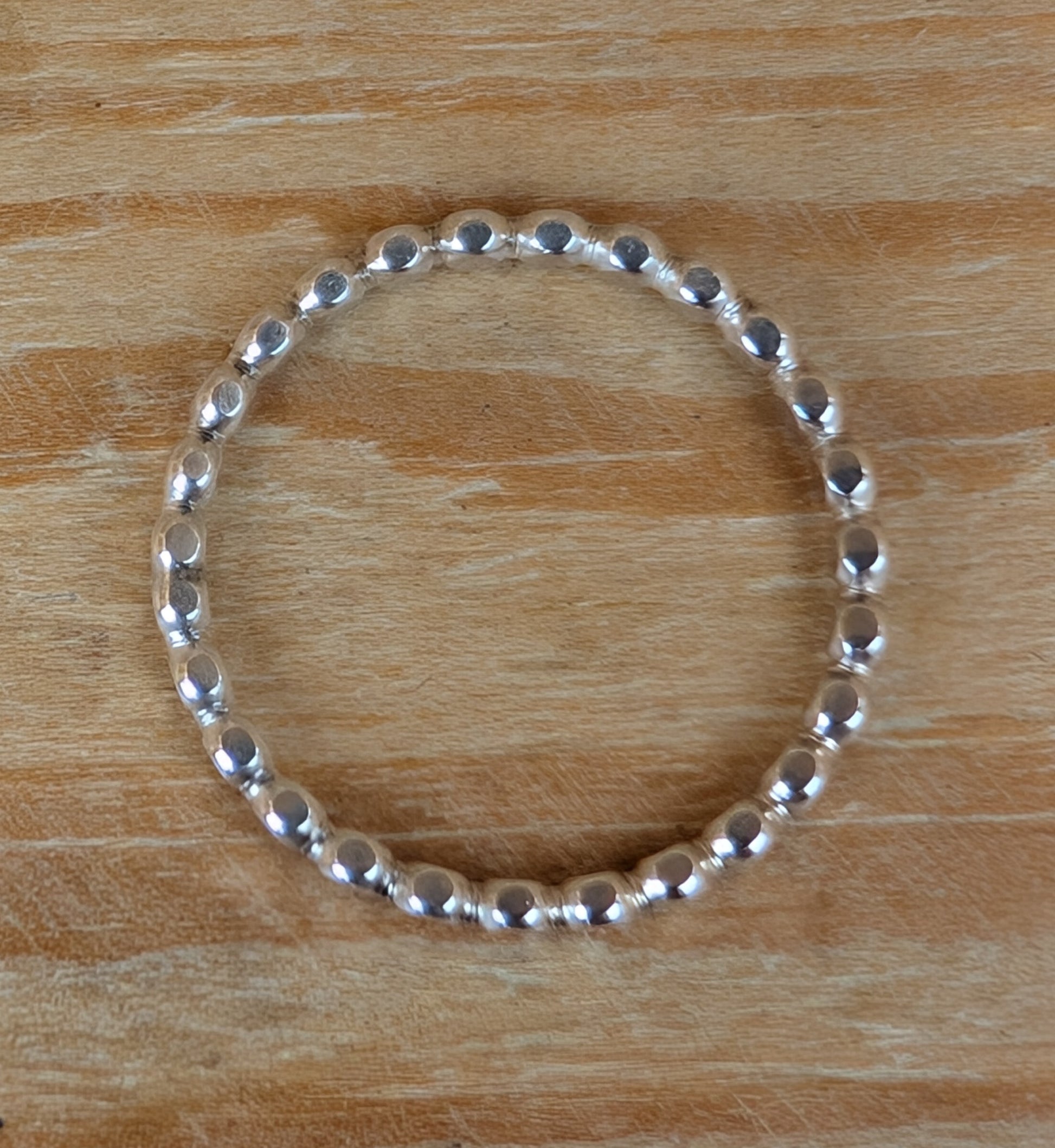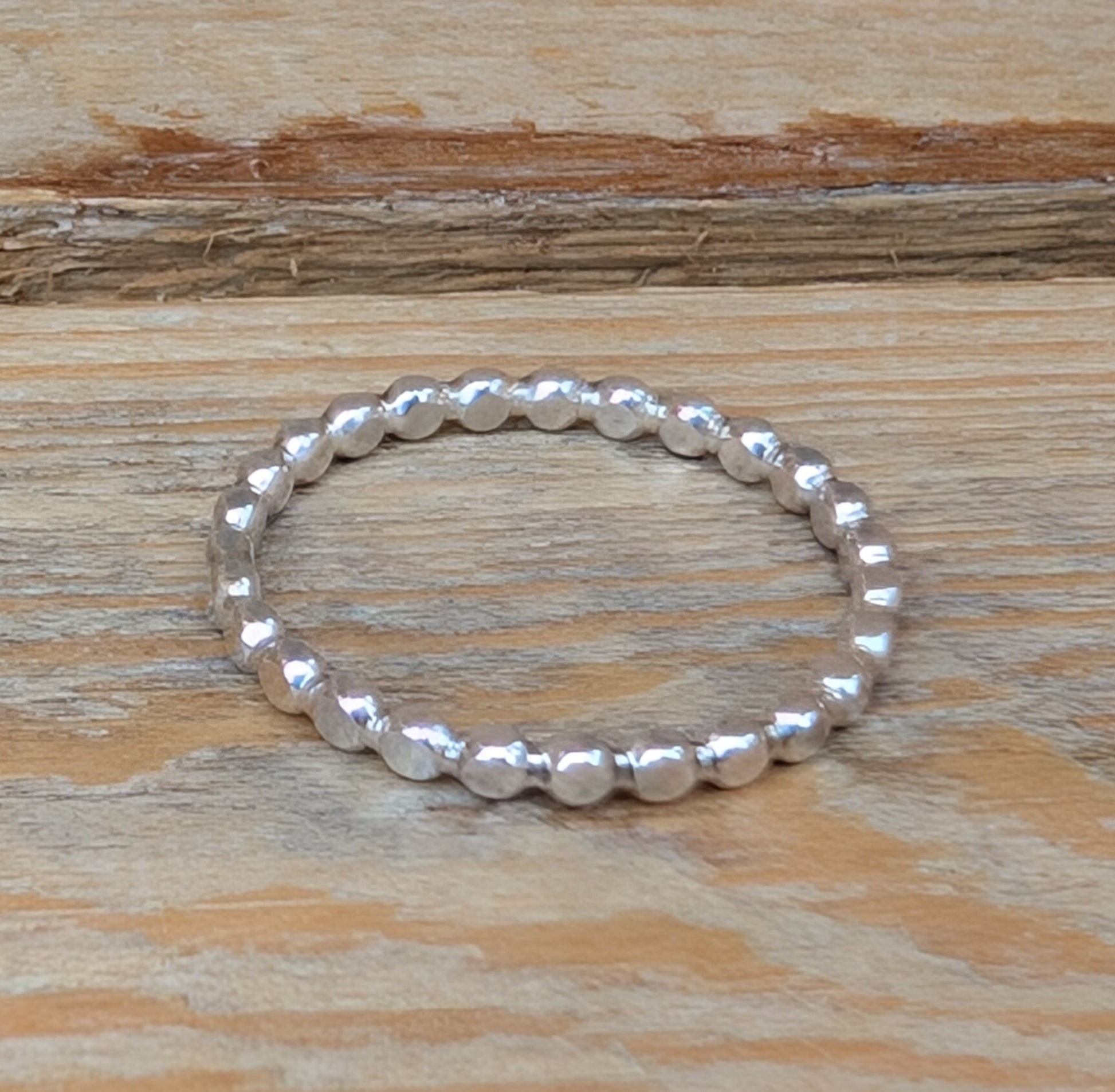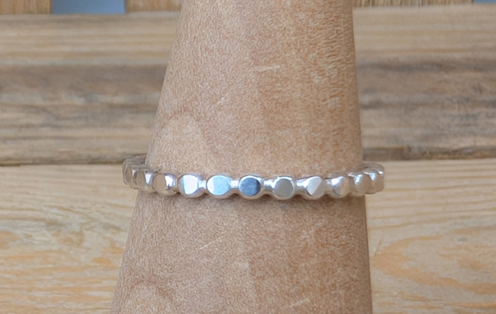 elevate any look with our stunning sterling silver flat bead stacking ring! featuring a sleek and versatile design, this ring can be worn alone or stacked with others for a unique and stylish touch. crafted with 2mm round high-quality sterling silver wire, it is sure to add a touch of elegance to any outfit.